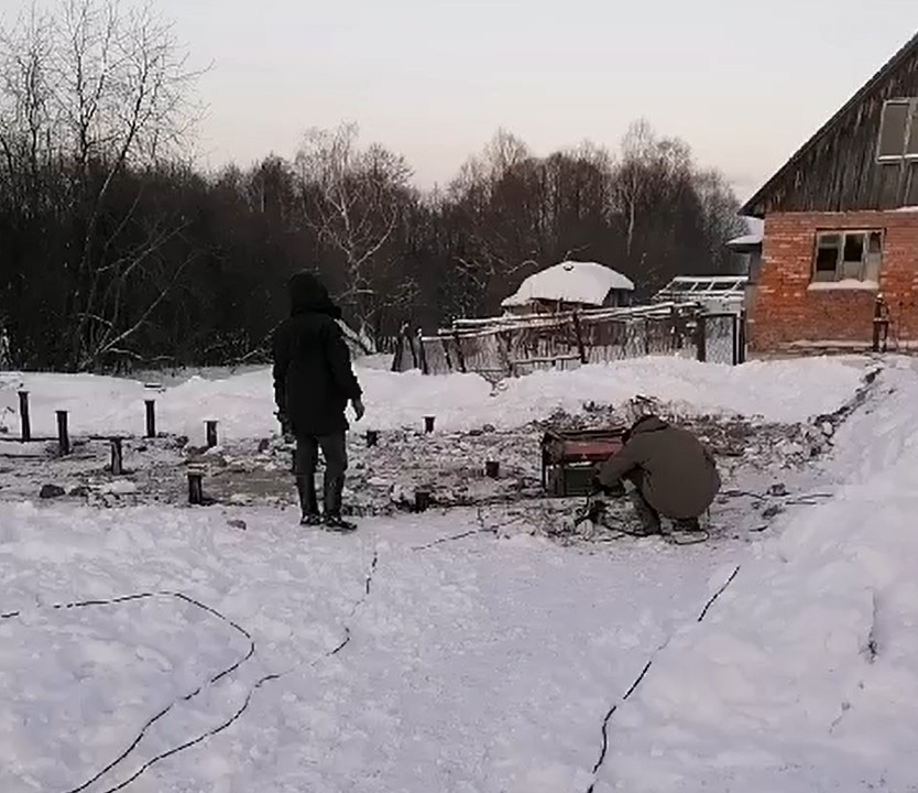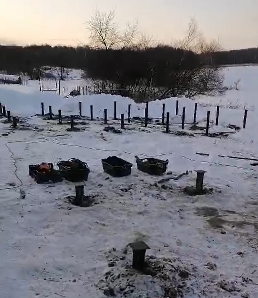 —Три свайных фундамента 6х9м плюс пирс на пруду, монтаж в зимний период