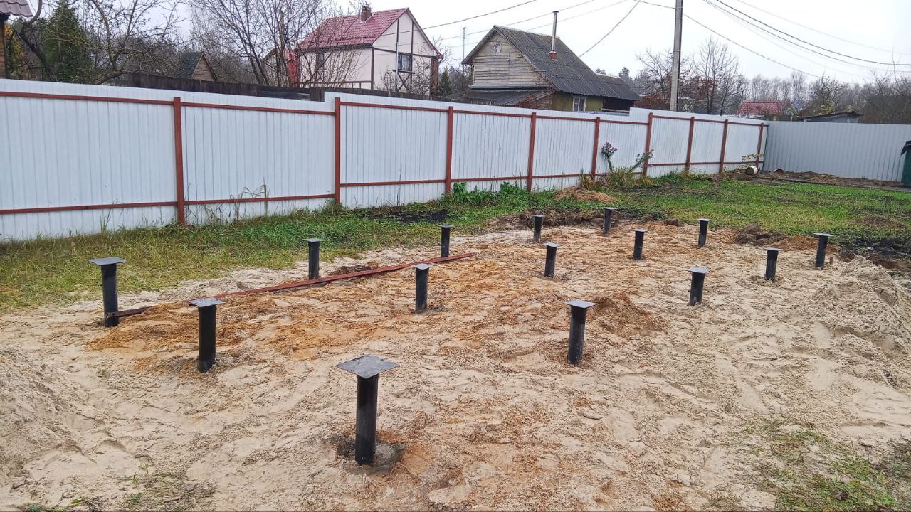 Мы использовали сваи диаметром 89 мм – это "золотой стандарт" для подобных легких, но ответственных построек, обеспечивающий превосходную несущую способность. Длина свай в 2.5 метра была выбрана не случайно: это позволяет заглубить сваю значительно ниже уровня промерзания грунта в Московской области. Такое решение гарантирует, что фундамент не будет "гулять" и деформироваться под воздействием морозного пучения, сохраняя баню в идеальном состоянии на долгие годы.